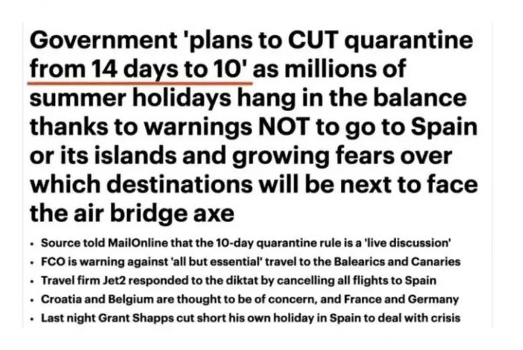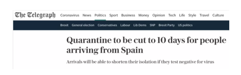 据《电讯报》报道,英国政府已宣布,把入境隔离时间从14天缩短至10天,只需要入境者在第8天接受检测时的结果为阴性即可。